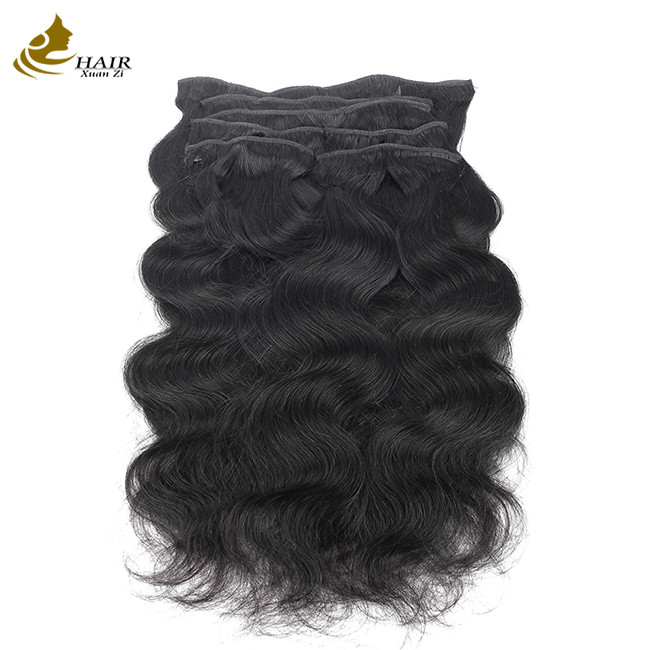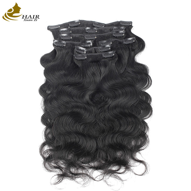 | Product Name | Wholesale Natural Black Brazilian Remy Human Hair Body Wave Clip In Hair Extensions |