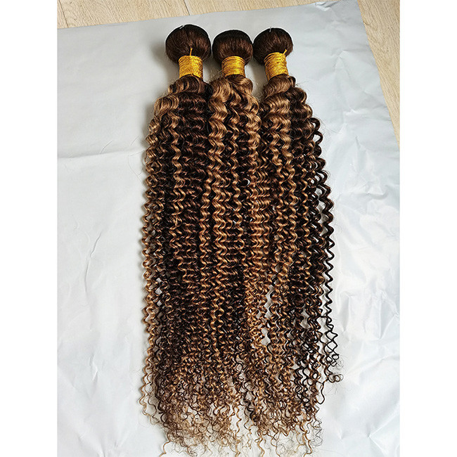 Kinky Curl Hair Bundles P4/27 Ombre Human Hair Extensions Hair Weft